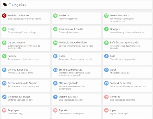 As categorias são utilizadas para classificar as atividades executadas pelo usuário.