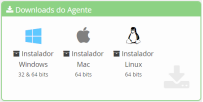 Instaladores do Agente para as plataformas Windows, MacOs e Linux.