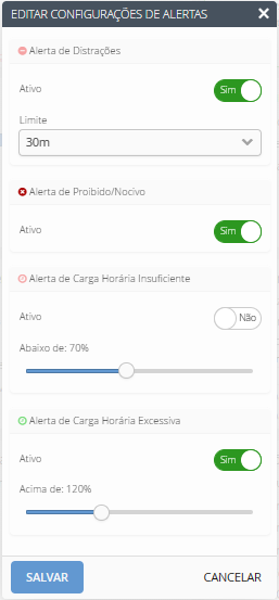 - Alerta para carga horária excessiva.