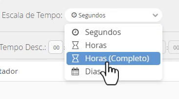 • Agrupe por período ou data selecionada e também não se esqueça de definir a escala de tempo: segundos, horas ou dias.