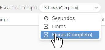 • Ajuste a escala de tempo: segundos, horas ou horas (completo).