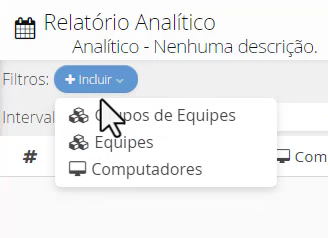 Filtre por grupo de equipes, equipes e computadores. Se não encontrar o computador desejado, tente ajustar o período conforme o histórico de uso.